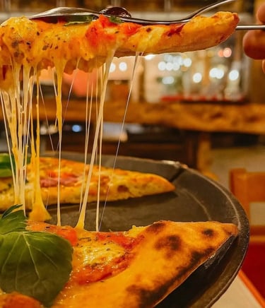 Em meio ao clima aconchegante de Campos do Jordão, nossas pizzas de forno a lenha são preparadas com massas de longa fermentação, respeitando o tempo certo para alcançar leveza, sabor e textura únicos. O ambiente convida a desacelerar, sentir o aroma da lenha e aproveitar cada momento, enquanto ingredientes selecionados e preparo artesanal transformam a pizza em uma experiência completa — simples, autêntica e feita para ser compartilhada.